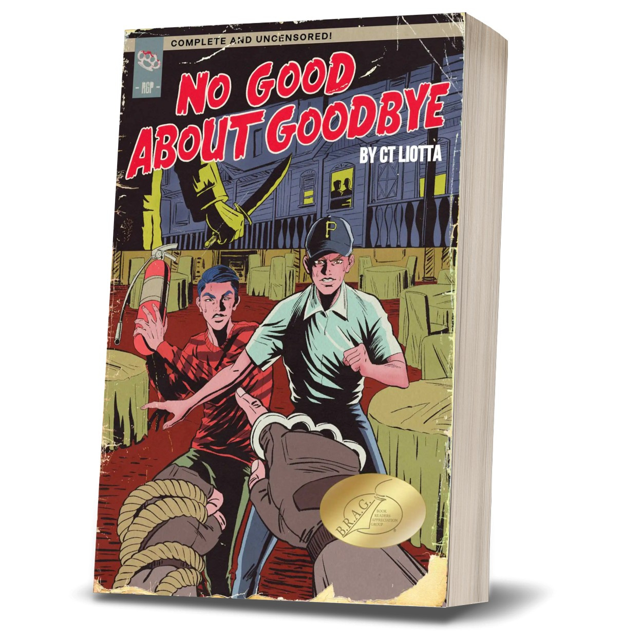 No Good About Goodbye is my debut 2021 novel about Ian Racalmuto dealing with loss, life changes, and having a huge crush on his best friend, all while people are trying to kill him. It’s a hoot. It got a great review from IndieReader, and was awarded an IndieBrag seal in 2022.